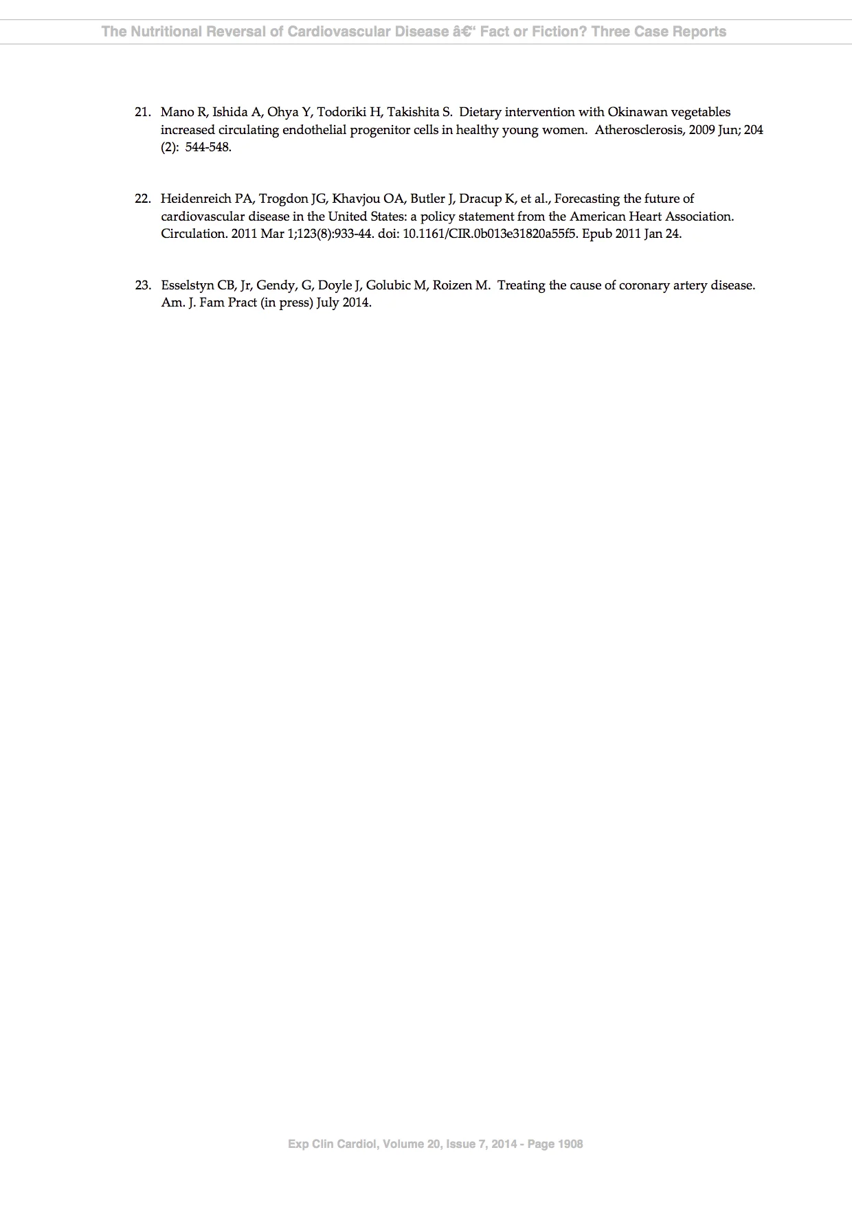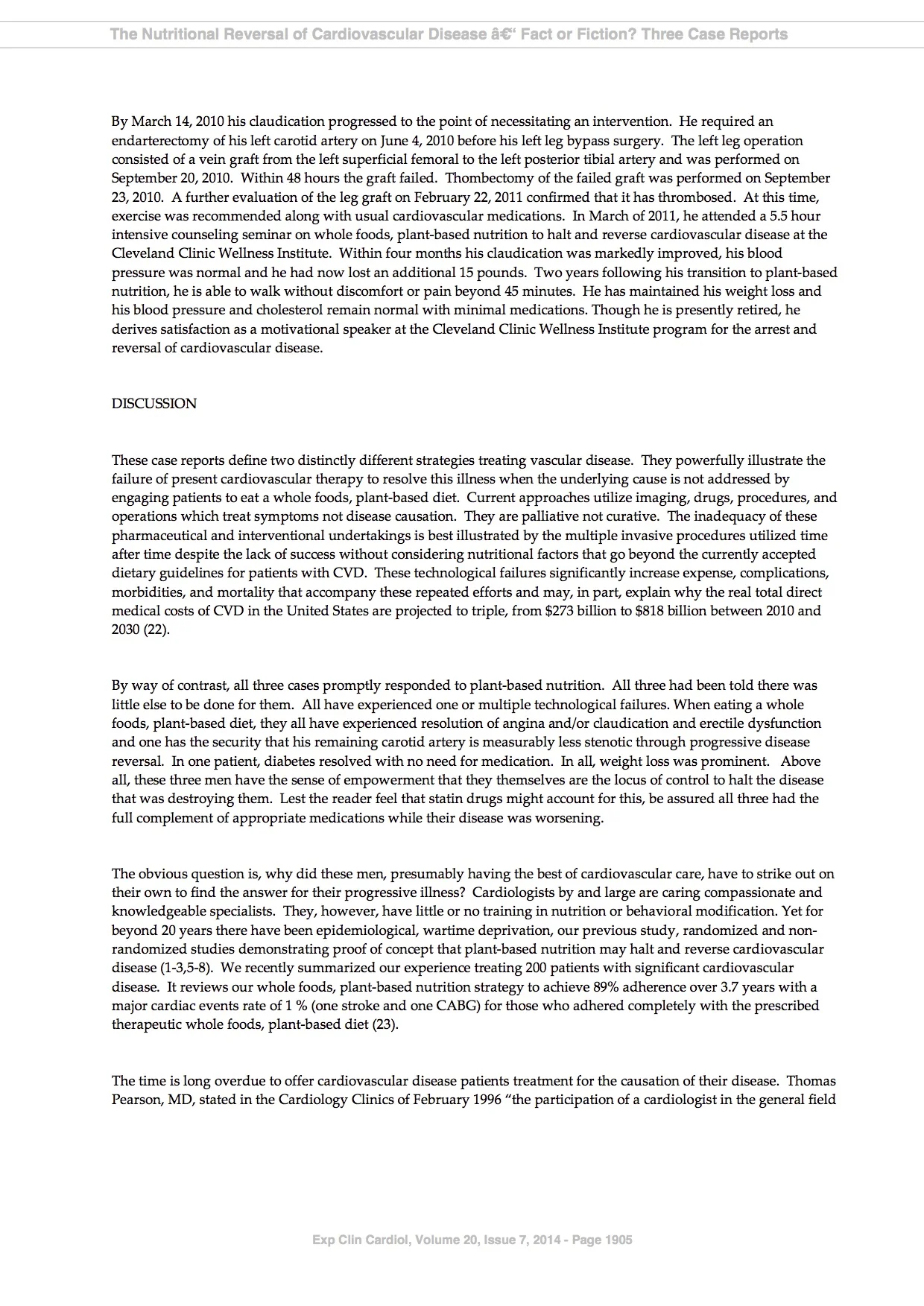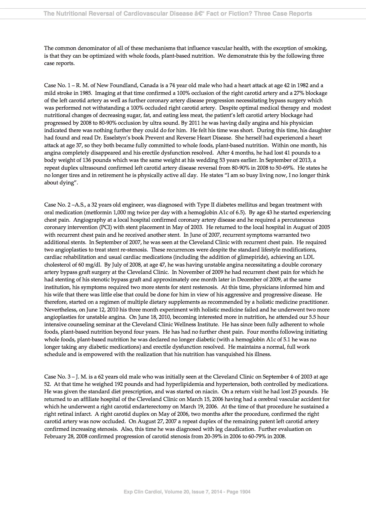 The Nutritional Reversal of Cardiovascular Disease Fact or Fiction? Three Case Reports