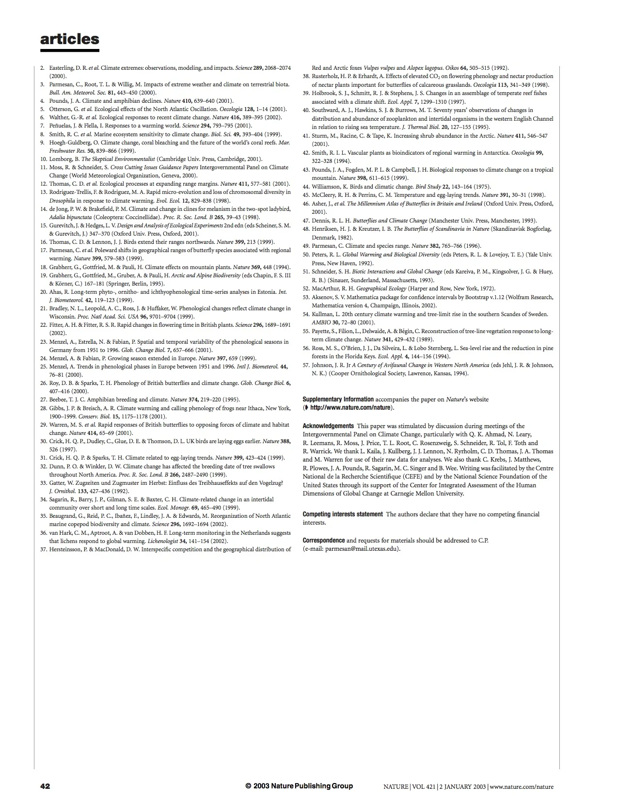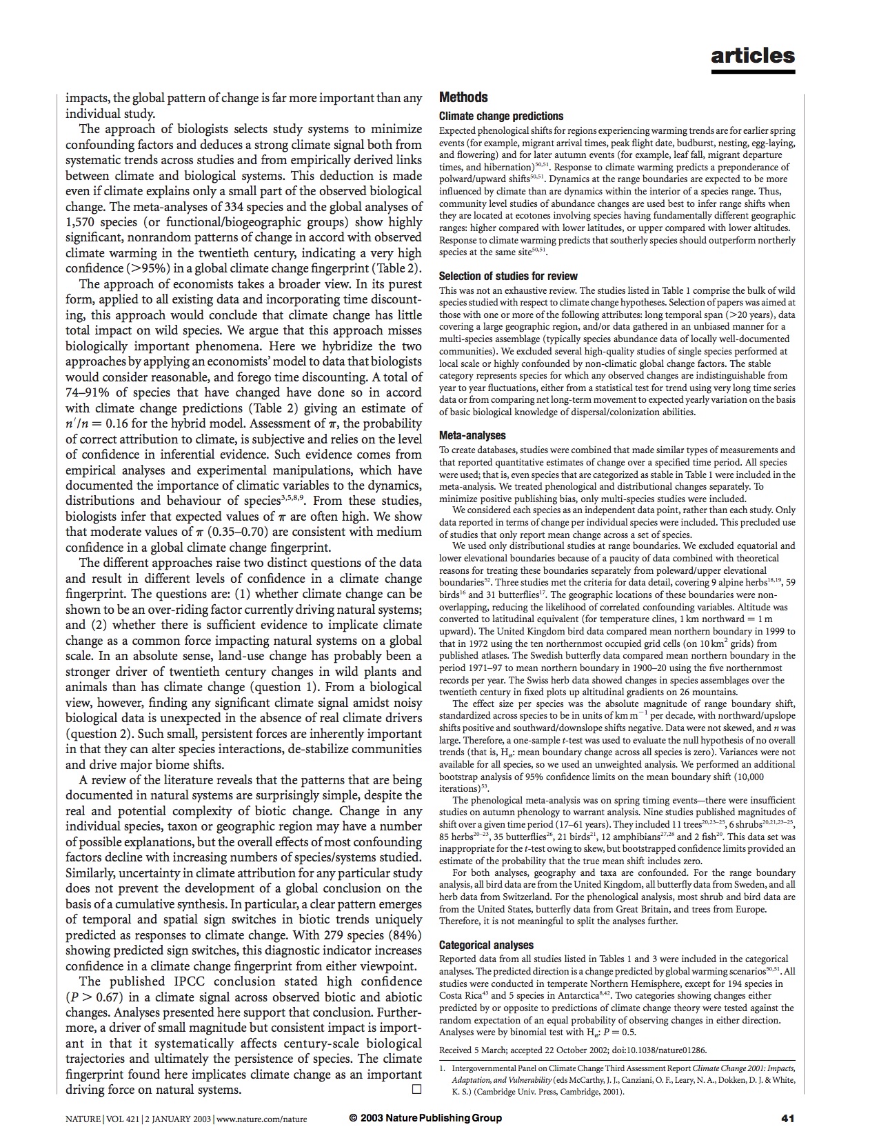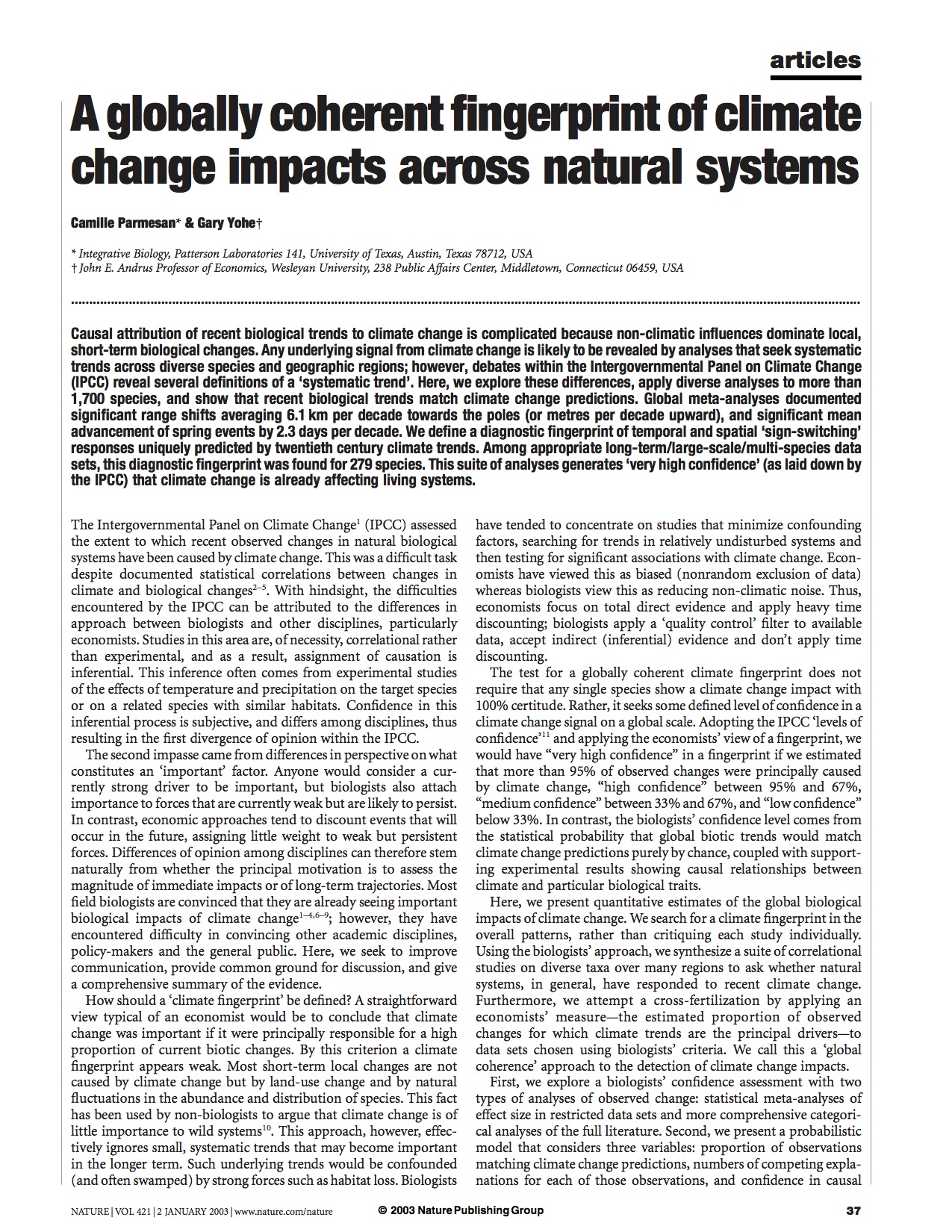 by Camille Parmesan & Gary Yohe